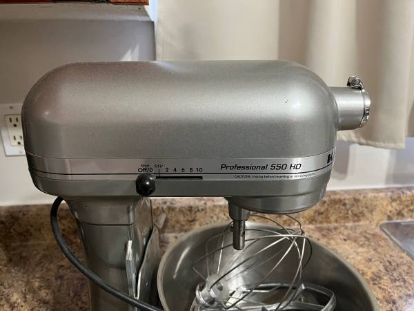 Kitchen aid professional mixer with multiple attachments used 3 times if that in perfect condition