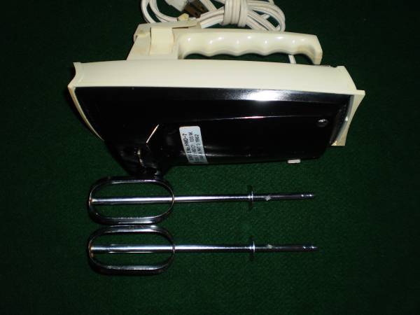 Sunbeam 'Burst of Power' Mixmaster Hand Mixer, White Pat'D 1962 WORKING with 2 Beaters $10 with FREE BONUS below Black & Decker PowerPro Handheld Mixer 250W WORKS LOUD with 4 Beaters Pickup ONLY...
