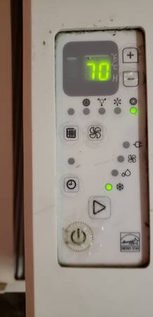 good working condition 8,000 BTU, able to cool large room 14 inch high, 19 inch wide and 16 inch deep will plug in on my porch to show working condition not needed because installed central AC cash...