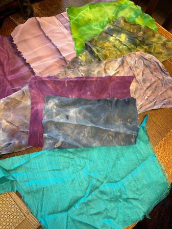 FREE large bag of crafting scraps; assorted silk and polyester, many cut into 4' squares. A real grab bag and find for the crafter. pick up from the front porch