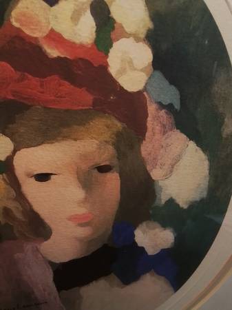artwork in the image is by Marie Laurencin, a French painter, printmaker, and stage designer known for her delicate depictions of young women