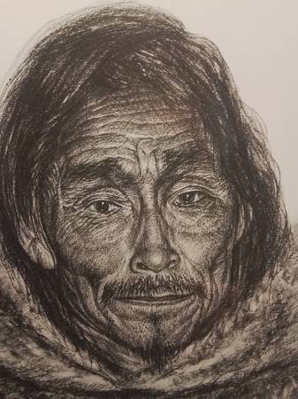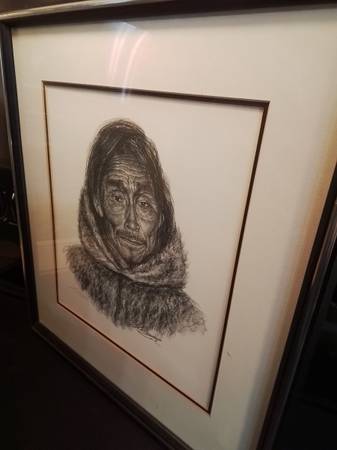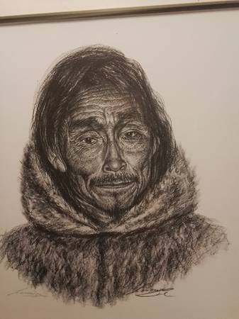 Framed Charcoal Drawing of Inuit Person Signed Beautiful framed charcoal drawing. Depicts an Inuit elder. Artist's signature present. Measures approximately 19.25 x 21.25 including frame. Pickup at...