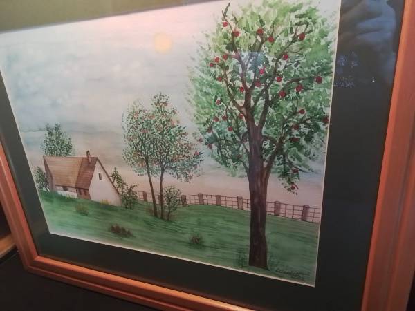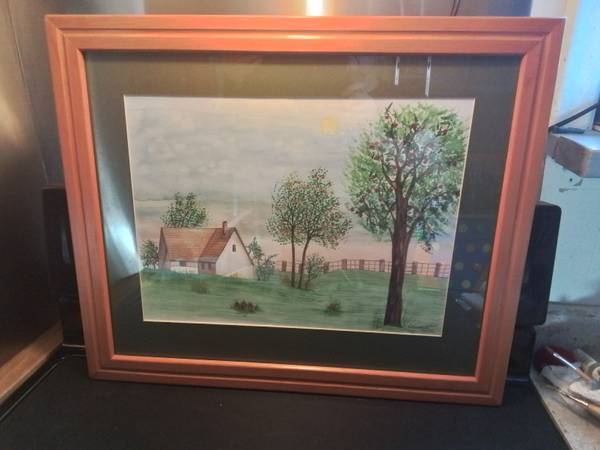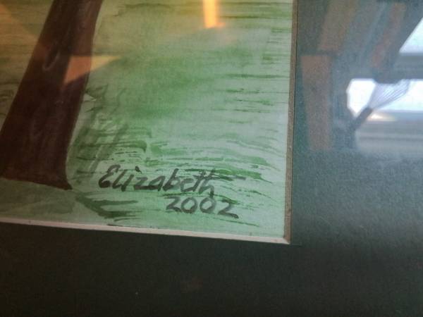 This framed watercolour painting, signed by Elizabeth in 2002 and titled 'Rural Summer #34', captures a serene countryside scene. The frame measures approximately 23.5 x 19.5 inches. As a previously cherished piece, it adds a touch of pastoral charm to any room. If the ad is up, it's still available, ready to bring a little bit of the countryside into your home!