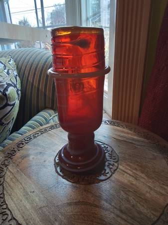 Hypnotic European Opalescent Red Art Glass Vintage Vase