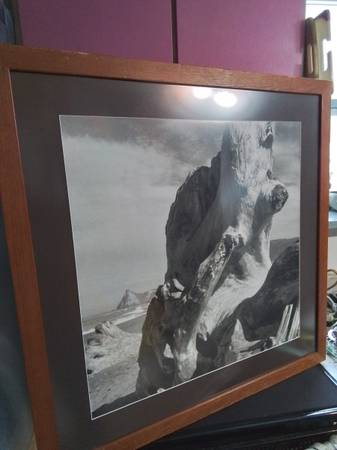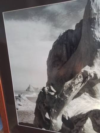 Large Framed Black and White Photograph of Driftwood Framed black and white photograph. Depicts a large piece of driftwood on a beach. Wooden frame. Good condition. Measurements 32.5 x 32.5 Pickup...
