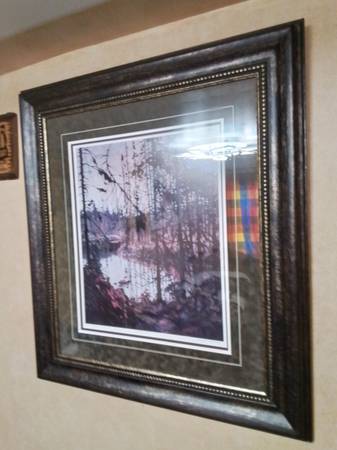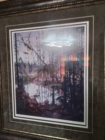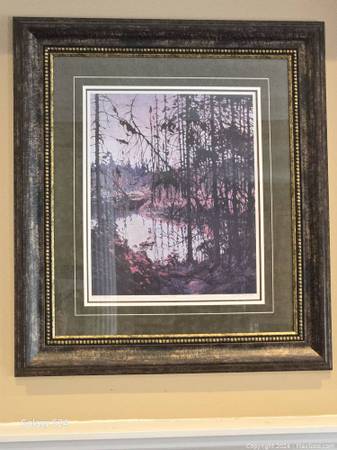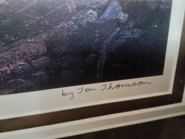 This signed and numbered print is a NAC copy of the 1914 oil painting by Group of 7 artist Tom Thompson. Inspired by a sketch completed over the winter in Algonquin Park. Beautifully framed and matted.