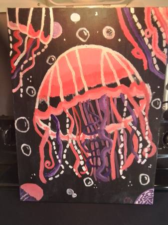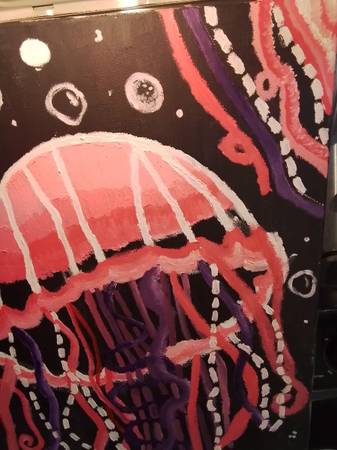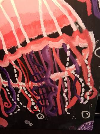 Original Acrylic Painting of Jellyfish Acrylic painting on canvas. Depicts jellyfish against a black background. Measurements 18 x 24 Pickup at Young Street and Steels Ave