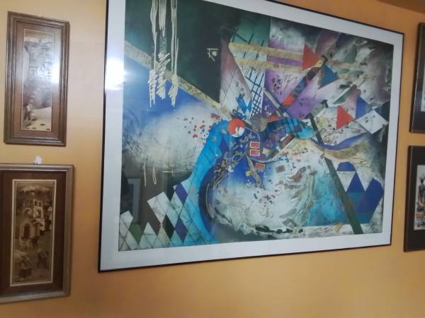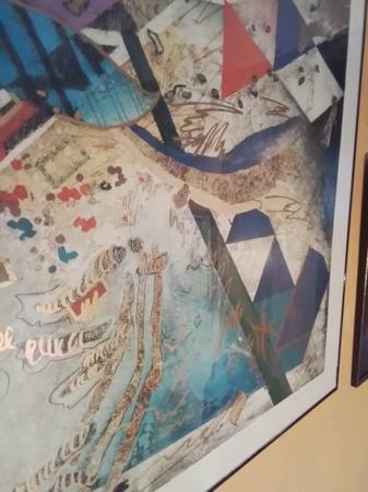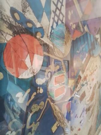 Large piece great for big wall. Abstract art with many colours Large Robert Kostuck signed framed print 1991 mixed emotions