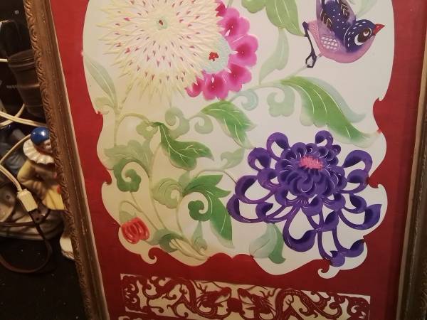 Vintage Asian Paper-Cut Artwork Framed Picture