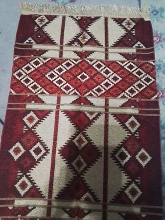 I've consulted my crystal ball (aka , Facebook Marketplace, Karrot, and Poshmark) and similar rugs are typically priced between $75 and $150. Given the condition and unique design, I've priced it fairly.