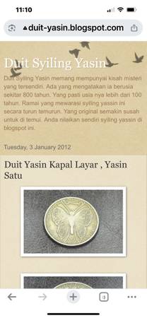 Shipping free Hard to found Soort Yasin Hert of Quran token coin 18th century Java Indonesia about 1650-1800 centuries..