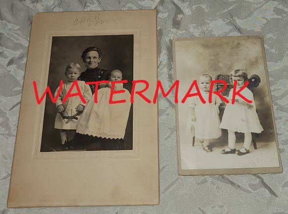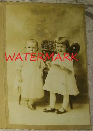 a. ORIGINAL, CANADIAN PHOTOGRAPH, Two Young Girls Photograph on Deckled edged Folder, marked in graphite, 'Jean Carr 3 yrs, Joan Carr 2 1/2 years', with impressed photographer's mark in front, 'Webster & Co., St. Mary's Ont.', 1918, 6 1/4" x 4 1/4".