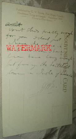 ORIGINAL ONTARIO Colour Postcard marked, "Sylvan Glen, near Port Hope, Canada' with Tent, Deck on body of water, Three Canoes, & Little Girl with Hat, by 'G.V. Strong, Port Hope, Canada, Healthiest Town in Canada, Population 7000, Printed in Great Britain', c1909, 5.45" x 3.4".