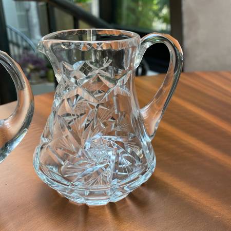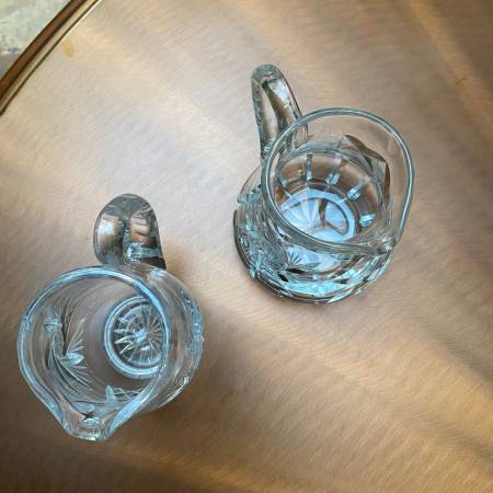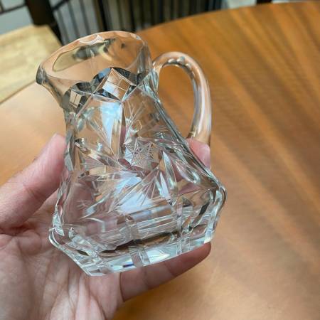 Add a touch of vintage elegance to your table or collection with these beautiful Bohemian crystal mini jugs/creamers.