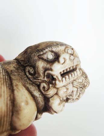 Antique Chinese Carved Foo Dog Lion Netsuke Pendant Size 6 cm length