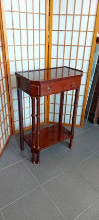 Very nice side table, bamboo/ asian style very good condition, one drawer work great original hardware, great size for bedside table, end table, entrance table. 19" width, 11" depth, 29" height