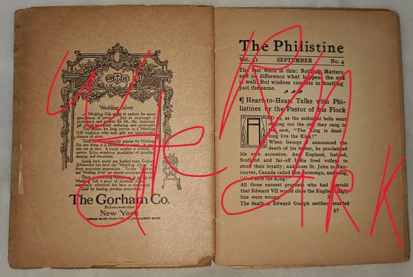 ORIGINAL ARTS & CRAFTS ROYCROFT THE PHILISTINE BKLET, 1910 - $35 (Jarvis Street & Front Street E., Toronto, Ontario)