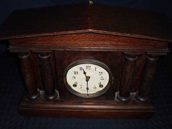 Antique Clock, Wood and Brass with Built-In Chime Bell, FREE - $300