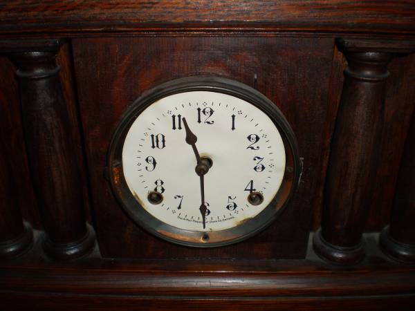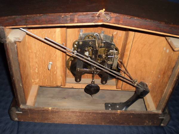 Antique Clock, Wood and Brass with Built-In Chime Bell