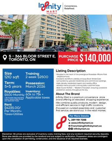Infinity Mart Franchise Opportunity – 366 Bloor Street E, Toronto, ON