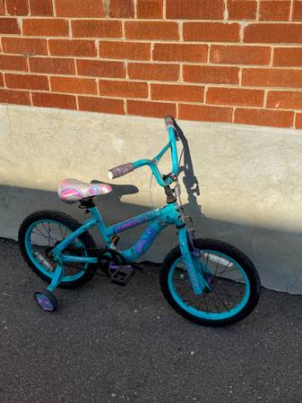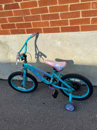 Unicorn Dynacraft Kids Bike Children's Bike with training wheels. Good condition. Tires hold air but cannot offer any guarantees on tire status once you pick it up. Please check diligently before paying for your item.