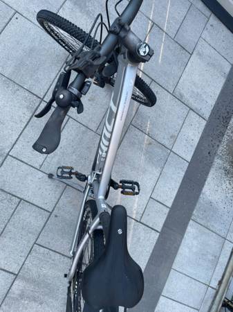 This is a silver Ghost Square bike in used-good condition, perfect for city and trail adventures. It's a reliable and versatile ride, ready for its next owner to enjoy. A few scuffs and scratches but nothing major. I have used this bike for commuting to work.