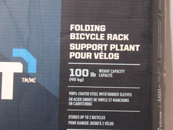 * The Mastercraft Wall Mount Foldable Bike Rack holds up to 100 lbs (45 kg)
