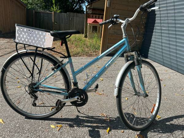 18 Speed,16” Frame(Would suit person 5’5” to 5’10”,700 Wheels. NEW PARTS:Rear Tube,Saddle,Bell,Bottle Cage,Rear Carrier+Basket,Kick Stand.