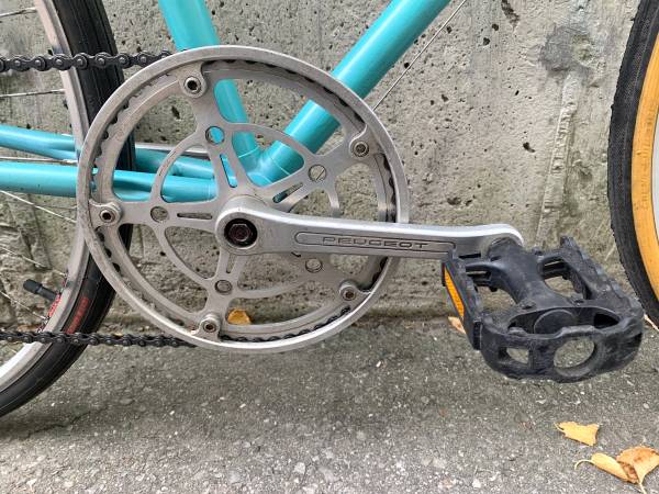 Still available, no answer for that and without cell number sorry! For sale is classic steel 7 speed road bike Peugeot Super-Sport, freshly restored, customized and tuned! High end components for its era of built, aluminum alloy double wall wheels, Shimano rear derailleur and 7-speed freewheel, new chain and brake pads. Check pictures for details please!
