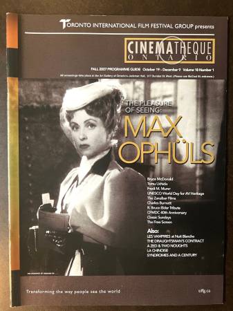 - Cinematheque Ontario October 2007 Magazine. Max Ophuls, Tomu Uchida, Charles Burnett, Bruce McDonald, Bruce Elder, Fred M. Murer & more. 43 pages.