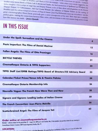3 Cinematheque Ontario 2009 Magazines $36 or priced individually .... - Cinematheque Ontario January 2009 Magazine. Carl Theodor Dreyer, Terence Davies, Miklos Jancso & more. 54 pages. $14 -...