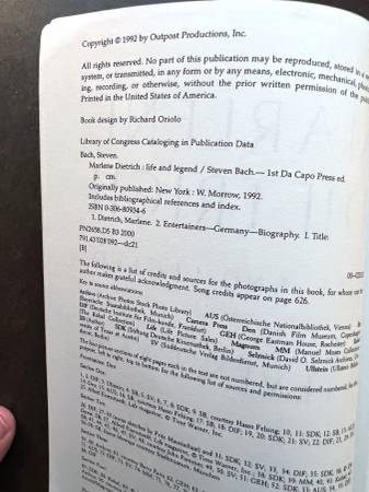 Marlene Dietrich: Life and Legend by Steven Bach. 626 pages. 1992 Da Capo Press. Softcover. With filmography. See other items.