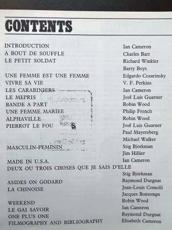 The Films of Jean-Luc Godard small hardcover. Essays by various critics and filmography to 1968. 192 pages.