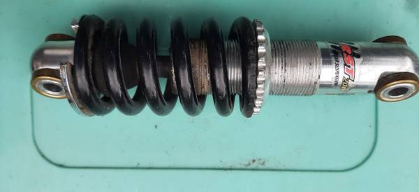 Two different Rear suspension spring shocks for mountain bike, $15 each. 1). 'RST 20B' Rear suspension shock - 145mm x 32mm. /750Lbs. Travel: 32mm Stroke Shock Type: Coil Length struts: 145mm 2)....
