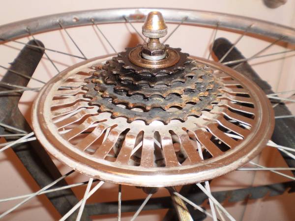 Ambrosio 27x 1.25in 36-hole alloy rim + Shimano 333 High-Flange Hub + Quick Release + Rim Tape + 14-28 Sunrace 5-Speed Freewheel $80