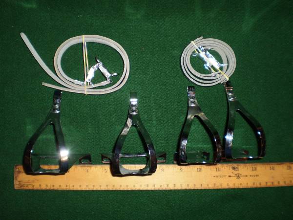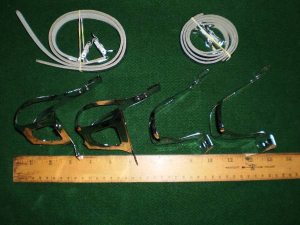 Campagnolo Chromed Toe Clips S/M, BOXED NEW $200 Christophe Chrome Steel Toe Clips, with Christophe Leather Straps, both NEW Larger ones ONLY (Small are gone) $40
