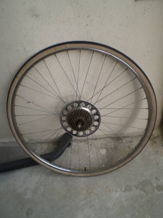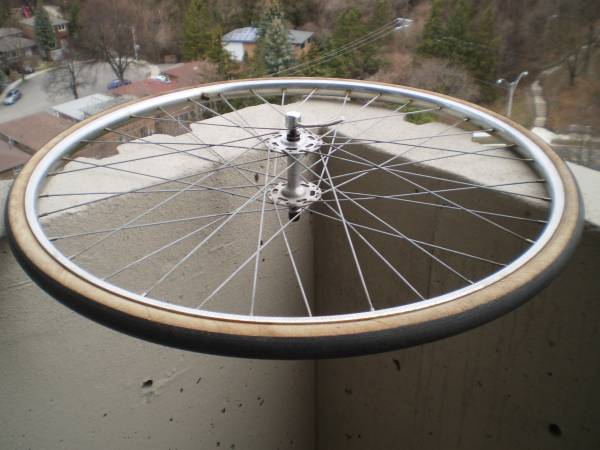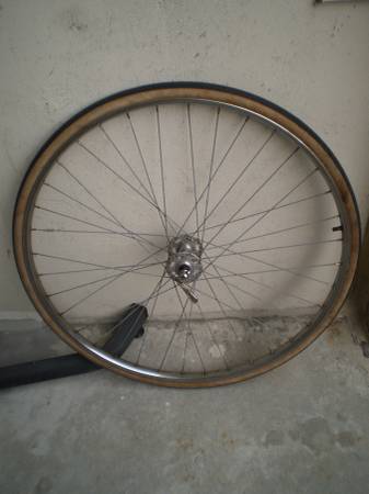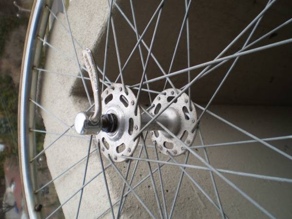 Normandy High Flange Hubs + Rigida Chromed Steel Rims, 27x1.25in Wheels are straight and hubs are smooth, QR front There is some cosmetic pitting in the (old) chrome Tires are old, tubes hold air...