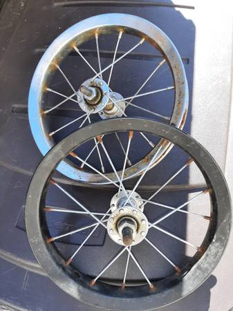 Replacement wheels front or rear for KID BIKE starting from $5 for the tire or for the rim: 10 inch, 12 inch, 14 inch, 16" 18 inch, 20 inch. Some of them are on the pictures. Not all wheels from this picture are still available. PLEASE MESSAGE ME THE SIZE THAT YOU NEED.