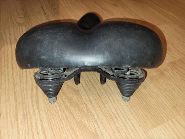 Bike womens comfort saddle. Made by Velo Bontrager. Springs, wide, special ergonomic design for ladies. Brilliantly comfortable, and you know how important this is for a long ride.
