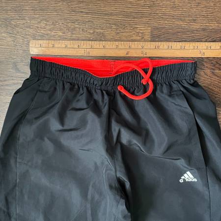 Selling a pair of Adidas Men's Track Pants with pockets-Small. They have drawstring at bottom hem to tighten. Gently used.