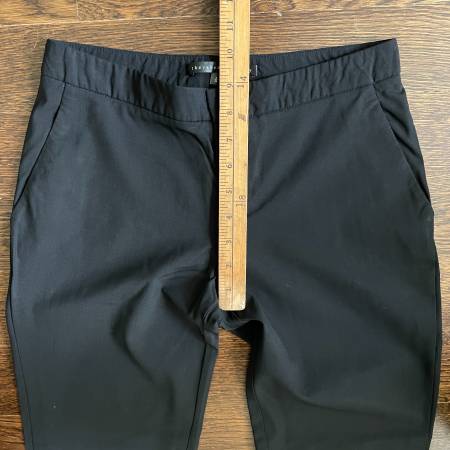 Selling a pair of Black Theyskens' Theory Ankle Pants-Size-Size 0. Side slit pockets. There is no inner tag but these are a silk/wool blend. Nice thin tight weave. Really luxurious. Gently used.