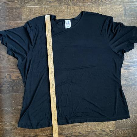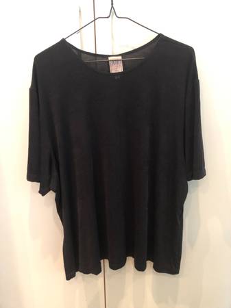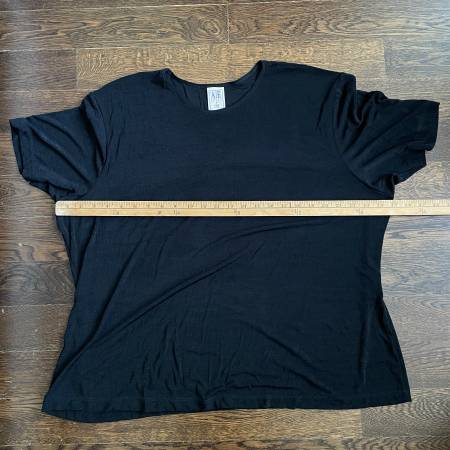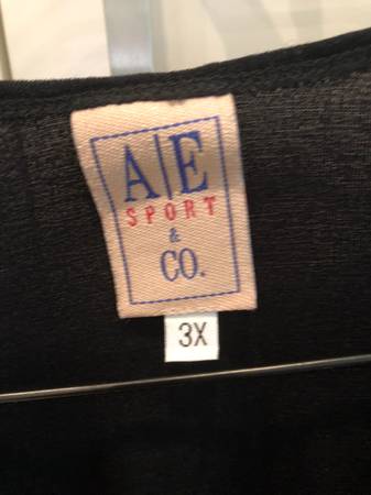Selling a plus size A/E Sport & Co. Black Slinky T-shirt. Size 3X. 90% Nylon 10% Spandex. Gently used. Pristine condition. Has a nice swing to it.