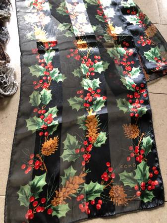 Selling a pristine ECHO Mistletoe silk-like scarf. Christmas holiday theme. NEW 11”x 56" Asking $10. Available for pick up in the Broadview/Danforth area. Contact-free porch pick up. Check out my...