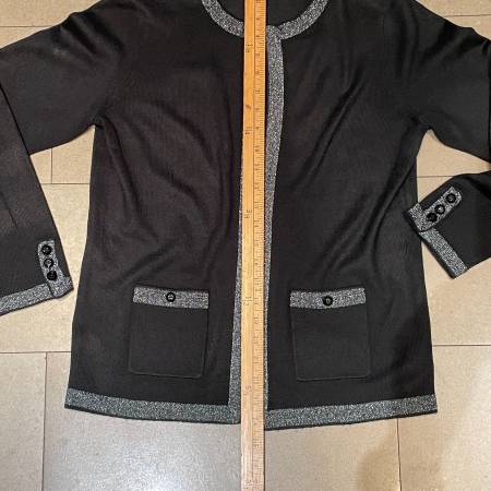 Selling a gorgeous "like new" Cardigan from Tabi . black with Silver metallic thread trim. Size Small. Has one hook and eye closure at the neck. Beautiful classic look.