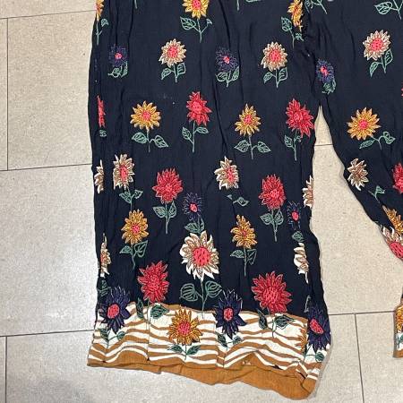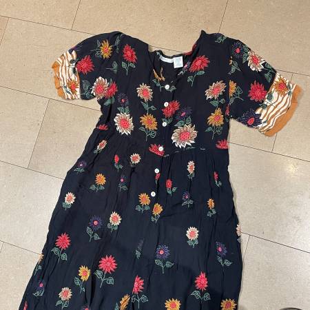 Selling a vintage 1990's La Cera crinkle black floral jumpsuit. Size Large. Button front and tie-back at the waist. Excellent condition.