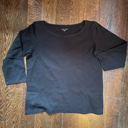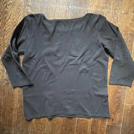 Selling 2 x Eileen Fisher Black Ballet Boat Neck 3/4 Sleeve 100% Cotton Tops-Size Small,