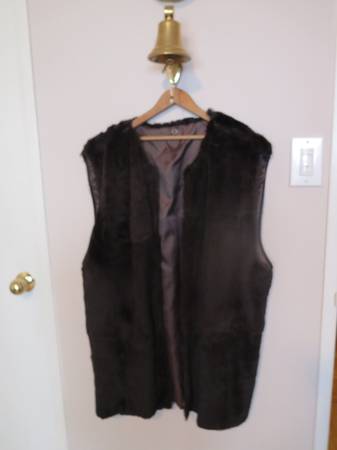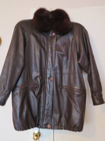Chocolate brown, size about 12 to 16. Jacket has button closure and full zipper and 2 pockets with zippered closure. Detachable genuine fur collar and detachable genuine fur lining. Suitable for...