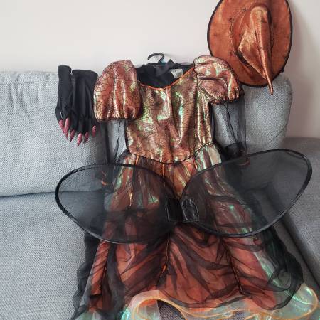 Fairy Princess -$10 , 6 yrs old... Gypsy Flying Queen -$10 - 10-12 yr old Wicked Witch- 20 -, 10-12 yr old....$20... Soccer Player - 3-piece set - $25 Adults: Beautiful Rhinostone Dress be whatever...