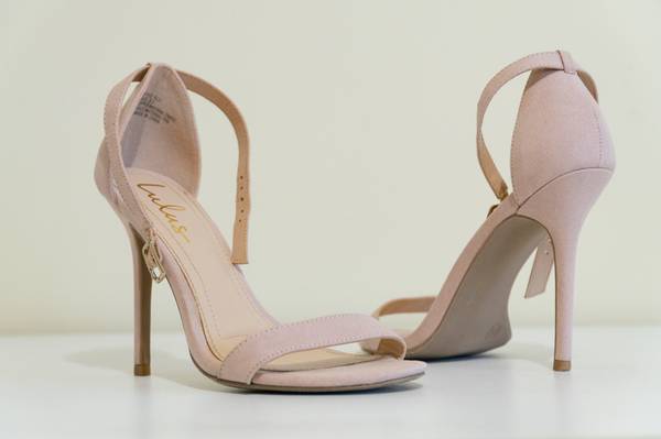 A pair of Lulus pink suede ankle strap heels, size US 8.5 See photo for actual item