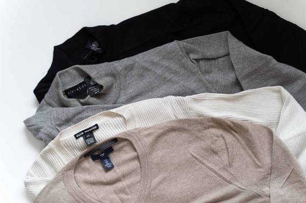 4 men's long solid color long sleeve sweaters, new or like new, good for office, comes from smoke free pet free home